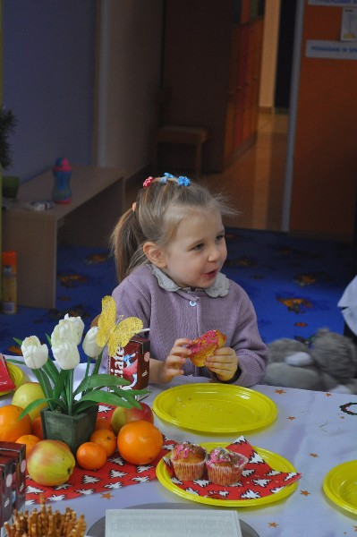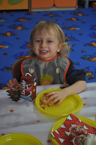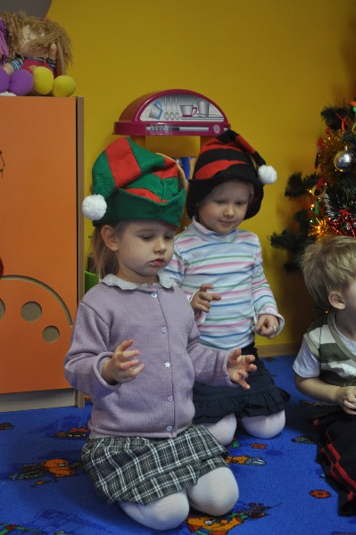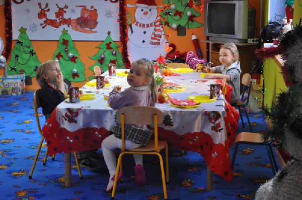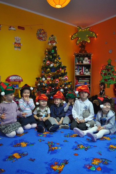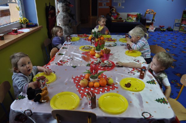Mimo, że za oknem śnieg okrył drzewa, a Dziadek Mróz szczypał nas w nosy i policzki to w naszym przedszkolu 23 grudnia było szczególnie ciepło, radośnie i świątecznie. Na początek wspólnie śpiewaliśmy kolędy, rozmawialiśmy na temat tradycji związanych z obchodami Świąt Bożego Narodzenia. Następnie dzieci wysłuchały „Legendy o choince” oraz opowiadały w jaki sposób razem z rodziną przygotowują się do tych niezwykłych świąt. Potem wspólnie nakryliśmy wigilijny stół nie zapominając o dodatkowym nakryciu dla niespodziewanego gościa oraz sianku pod obrusem. Zgodnie z tradycją zawiesiliśmy również gałązkę jemioły, żeby przyniosła nam szczęście w przyszłym roku. Później dzieliliśmy się opłatkiem życząc sobie nawzajem wszelkiej pomyślności i Wesołych Świąt. Wierzymy, że przedszkolna wigilia przyczyniła się do kultywowania typowo polskich tradycji i była miłym wstępem do przeżywania Świąt Bożego Narodzenia.