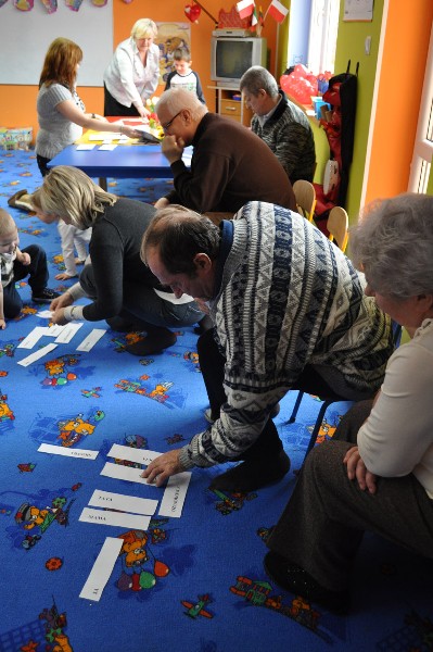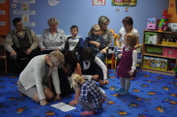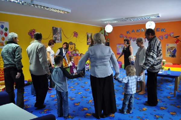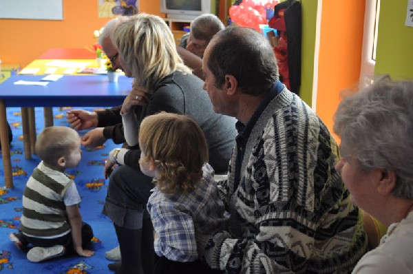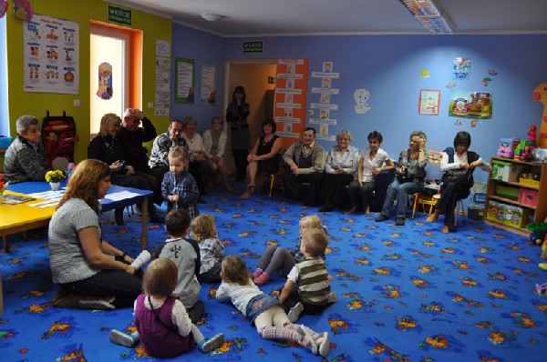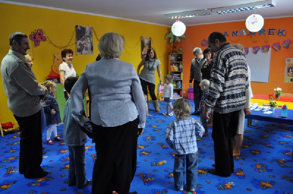 Podczas zajęć zorganizowanych w tym dniu dziadkowie wr az z wnukami wspólnie bawili się, tańczyli, brali udział w różnych konkursach. Następnie przedszkolaki zaśpiewały „Sto lat” zgromadzonym gościom oraz wyrecytowały przygotowany szczególnie na tę okazję wiersz. Dziadkowie byli bardzo dumni ze swoich wnuków, dało się również zauważyć łzy wzruszenie w oczach wielu babć. Na zakończenie przedszkolaki wręczyli swoim babciom i dziadkom w podziękowaniu za miłość, troskę i opiekę własnoręcznie wykonane laurki i serduszka z masy solnej oraz zaprosiły do stołu na wspólny poczęstunek.