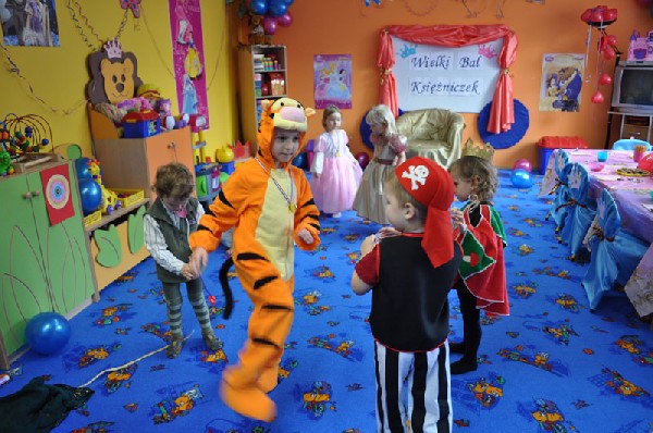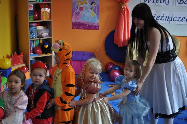 Nie zabrakło także piratów czy tygrysków. Bajkowy świat swoją obecnością zaszczyciła dobra wróżka Emilka, która przy pomocy czarodziejskiej różdżki wprowadziła uczestników zabawy w cudowny, magiczny klimat.
