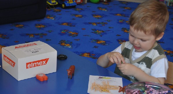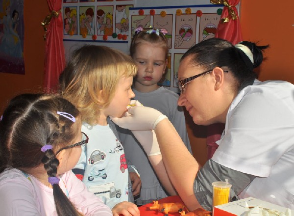 Wyjaśniła przedszkolakom, co należy robić, aby zęby były zdrowe, zachęcając do wizyt w gabinecie i ucząc prawidłowego mycia zębów. Dokonała oceny stanu uzębienia naszych podopiecznych jak również polakierowała ząbki wszystkich dzieci, które w prezencie otrzymały od naszego przemiłego gościa kolorowanki, pojemniczki w kształcie zęba na swoje pierwsze mleczaki oraz książeczki z historyjką o myszce Elince uczącej i pokazującej jak prawidłowo dbać o zęby.