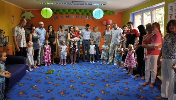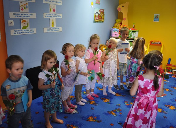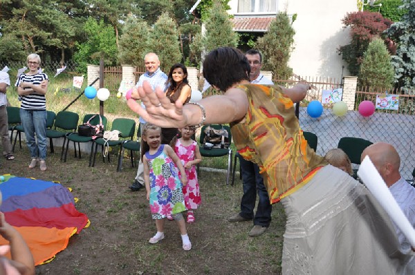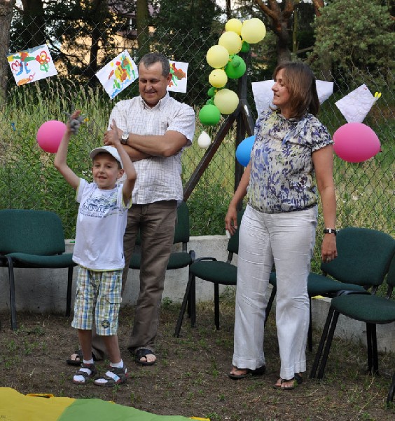 Dnia 22 czerwca obchodziliśmy w naszym przedszkolu Dzień Rodziny. Z tej właśnie okazji zorganizowaliśmy Piknik Rodzinny. Dzieci z niecierpliwością i wielkim przejęciem czekały na swoich gości. To dla swoich rodziców przygotowały występ słowno – muzyczny oraz wiele innych niespodzianek. Maluchy mówiły wiersze i śpiewały piosenki w podziękowaniu rodzicom za ich miłość i oddanie. Rodzice nagrodzili swoje pociechy gromkimi brawami. Następnie przedszkolaki po odśpiewaniu „Sto lat”  wręczyły rodzicom własnoręcznie wykonane laurki. Podczas tego dnia nie zabrakło również zabaw i konkursów dla rodziców i dzieci. Rodzice ochoczo brali udział w tych zabawach, mówili wiersze, śpiewali piosenki, wykazywali się sprawnością ruchową. Dużo radości sprawiły również zabawy z chustą animacyjną. Na rodziców i dzieci biorących udział w konkursach czekały słodkie nagrody. Nie lada wyzwaniem okazało się dla rodziców odszukanie  portretów wykonanych przez ich pociechy, wszyscy jednak poradzili sobie z tym zadaniem bardzo dobrze. Dla każdego dziecka jego rodzice są najważniejszymi osobami na świecie, dlatego też maluchy postanowiły ich nagrodzić wręczając Dyplomy Super Mamy