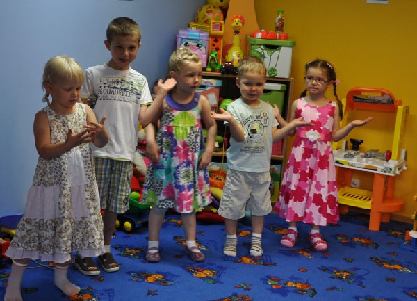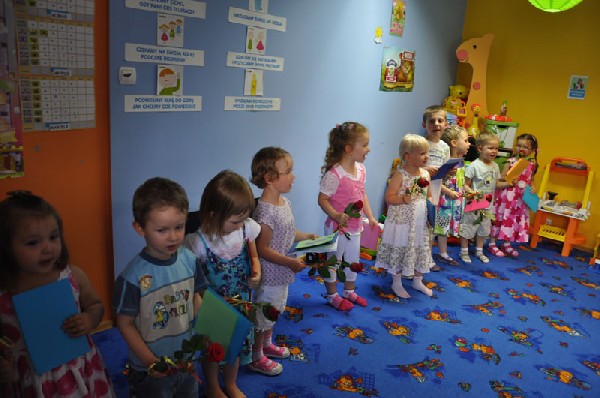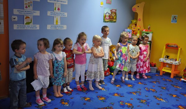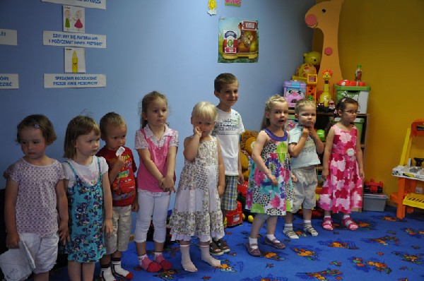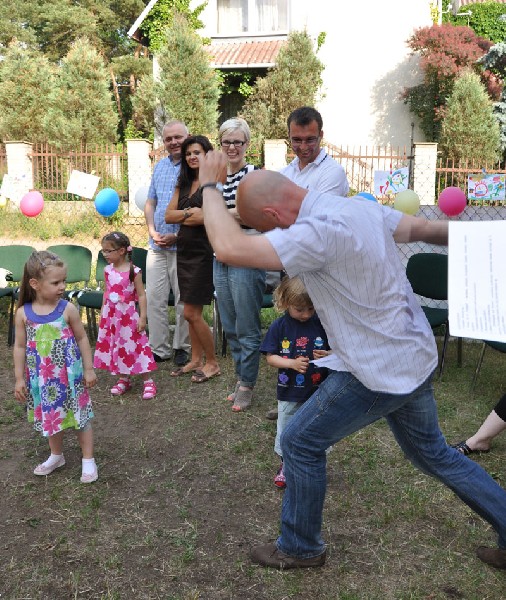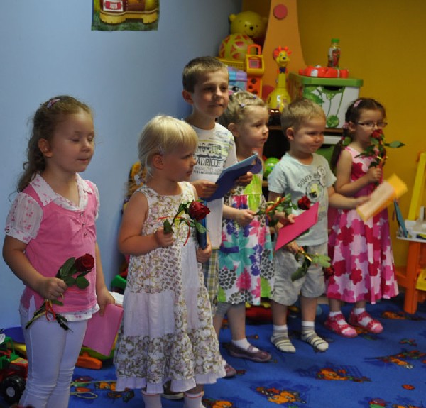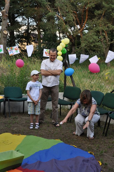 Dnia 22 czerwca obchodziliśmy w naszym przedszkolu Dzień Rodziny. Z tej właśnie okazji zorganizowaliśmy Piknik Rodzinny. Dzieci z niecierpliwością i wielkim przejęciem czekały na swoich gości. To dla swoich rodziców przygotowały występ słowno – muzyczny oraz wiele innych niespodzianek. Maluchy mówiły wiersze i śpiewały piosenki w podziękowaniu rodzicom za ich miłość i oddanie. Rodzice nagrodzili swoje pociechy gromkimi brawami. Następnie przedszkolaki po odśpiewaniu „Sto lat” wręczyły rodzicom własnoręcznie wykonane laurki. Podczas tego dnia nie zabrakło również zabaw i konkursów dla rodziców i dzieci. Rodzice ochoczo brali udział w tych zabawach, mówili wiersze, śpiewali piosenki, wykazywali się sprawnością ruchową. Dużo radości sprawiły również zabawy z chustą animacyjną. Na rodziców i dzieci biorących udział w konkursach czekały słodkie nagrody. Nie lada wyzwaniem okazało się dla rodziców odszukanie portretów wykonanych przez ich pociechy, wszyscy jednak poradzili sobie z tym zadaniem bardzo dobrze. Dla każdego dziecka jego rodzice są najważniejszymi osobami na świecie, dlatego też maluchy postanowiły ich nagrodzić wręczając Dyplomy Super Mamy