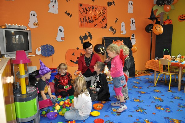 29.10.10r. – dzieci przyszły do przedszkola przebrane w różne stroje. Był wampir, czarownica, diabełek, pirat, wróżka, biedronka. Dominującym kolorem w Halloween powinien być kolor czarny lub pomarańczowy.