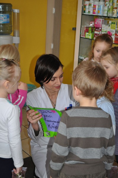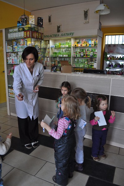 Dnia 9 marca wybraliśmy się na wycieczkę do sklepu zielarsko – medycznego „Antidotum”, którego właścicielką jest mama Antosia. Celem naszej wycieczki było bliższe poznanie zawodu wykonywanego przez panią Joasię. Przedszkolaki były bardzo przejęte wizytą.