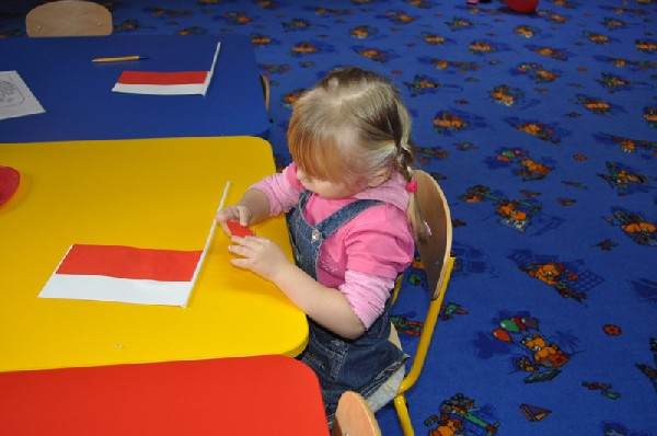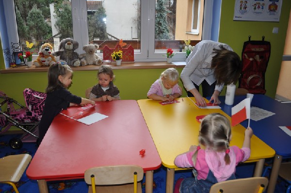 10. 11. 2010 roku na pamiątkę odzyskania przez Polskę niepodległości w 1918 roku przedszkolaki z naszej placówki wykonały flagi i kotyliony w barwach narodowych.