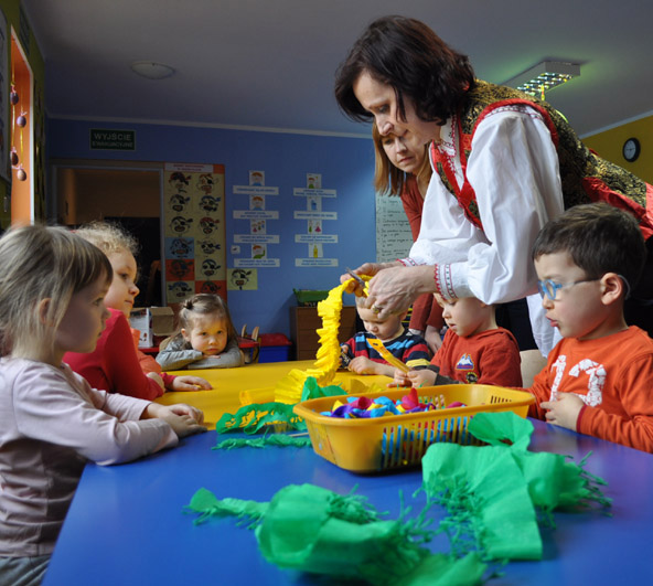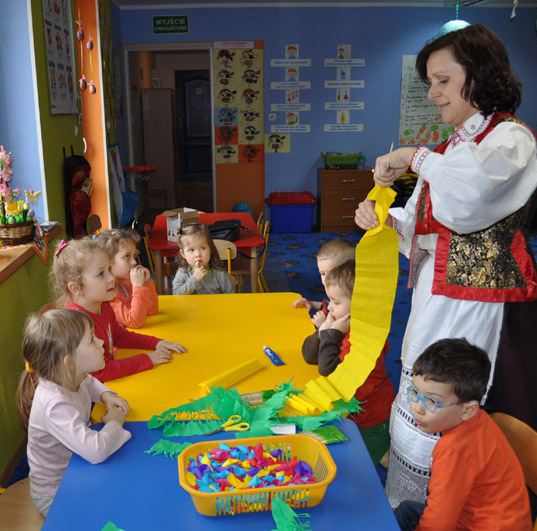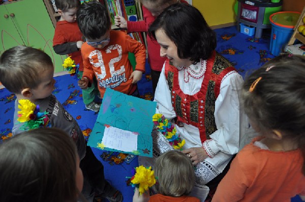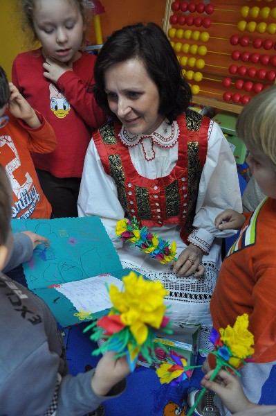 Dnia 29 marca nasze przedszkole już po raz drugi odwiedziła kurpiowska twórczyni ludowa Pani Barbara Gut. Przedszkolaki miały okazję zobaczyć, jak wygląda tradycyjny strój kurpiowski oraz wysłuchać pieśni regionalnych.