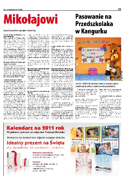 Dnia 12.11.2010 roku odbyło się uroczyste pasowanie na przedszkolaka. Tego dnia dzieci złożyły uroczystą przysięgę i zostały włączone do grona przedszkolaków. Jak na prawdziwego przedszkolaka przystało maluchy zaprezentowały swoje umiejętności, m.in. zaśpiewały piosenkę „Krasnoludki”, pokazały wierszyk w języku migowym, zaśpiewały piosenkę po angielsku, zademonstrowały, że potrafią samodzielnie się ubierać, jeść oraz sprzątać zabawki.