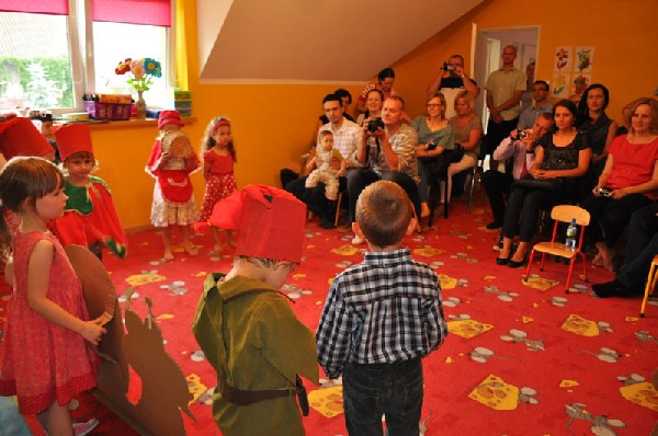 Dnia 21 czerwca obchodziliśmy w naszym przedszkolu Dzień Rodziny. Wszystkie przedszkolaki z wielkim przejęciem oczekiwały na zaproszonych gości. Specjalnie dla rodziców przygotowały przedstawienie, pt. „W Zaczarowanym Lesie”.