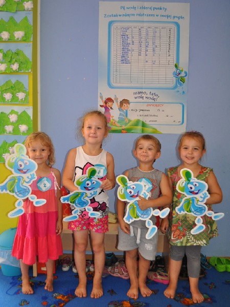 W dniach 30.07 – 03.08 odbyło się w naszym przedszkolu podsumowanie akcji „Mamo, Tato, wolę wodę!”. Celem tej akcji jest przede wszystkim kształtowanie nawyku picia wody wśród najmłodszych dzieci, doskonalenie nawyku zdrowego odżywiania się oraz aktywnego trybu życia, jak również poznawanie sposobów oszczędzania wody w życiu codziennym.