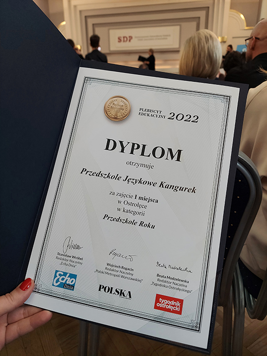 I MIEJSCE - Przedszkole Językowe Kangurek w kategorii PRZEDSZKOLE ROKU