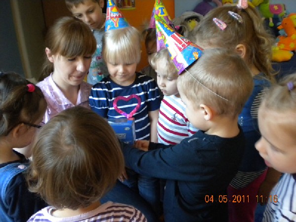 Dnia 13 maja obchodziliśmy w przedszkolu czwarte urodziny Klaudii. W tym dniu Jubilatka przyniosła piękny tort w kształcie lalki. Wszyscy odśpiewali dla Klaudii głośne „Sto lat” oraz złożyli życzenia urodzinowe. Przytulankom i całusom nie było końca. Następnie Jubilatka zaprosiła wszystkich na słodki poczęstunek. Tego dnia w przedszkolu było bardzo wesoło, kolorowo i słodko. Z okazji urodzin życzymy Klaudii dużo zdrowia oraz spełnienia marzeń.