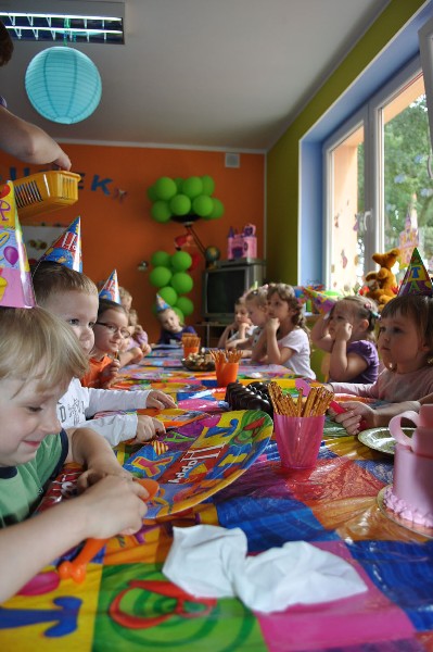 Dnia 4 lipca obchodziliśmy w naszym przedszkolu czwarte urodziny Ali. Jubilatka tego dnia przyniosła do przedszkola piękny tort w swoim ulubionym kolorze – różowym. Ala nie miała żadnego problemu ze zdmuchnięciem czterech świeczek na torcie. Po odśpiewaniu hucznego „Sto lat” i życzeniach jubilatka zaprosiła wszystkich na słodki poczęstunek. Podczas tego dnia było mnóstwo radości i zabawy. Życzymy Ali, żeby uśmiech towarzyszący na jej twarzy podczas tego dnia nigdy jej nie opuszczał.