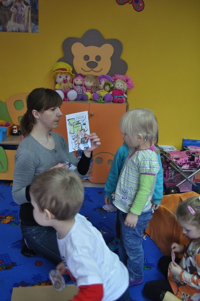 Na zakończenie spotkania nasz gość przeczytał dzieciom książkę, przyłączając się tym samym do akcji „Cała Polska Czyta Dzieciom – Czytające Przedszkola” prowadzonej w Punkcie Przedszkolnym „Kangurek”.